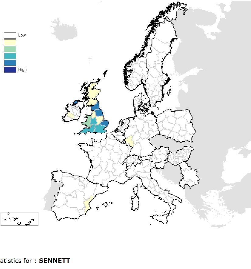 Source: www.BritishSurnames.co.uk/surname/sennett etc.2018 Worldwide Population incidence |